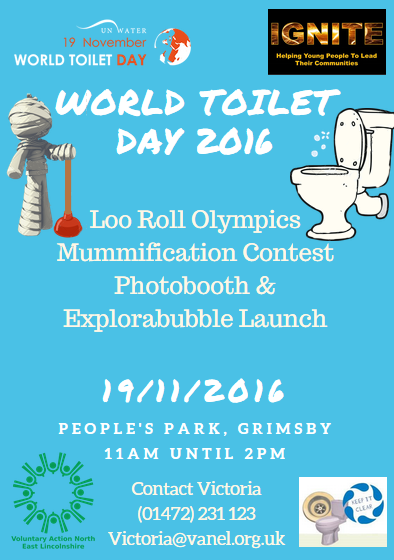 On November 19th 2016, VANEL, in partnership with Anglian Water’s ‘Keep It Clear’ campaign will be holding a World Toilet Day event to raise awareness of this issue and help you to keep your drains and toilets in tip-top condition. The event will take place at People’s Park in Grimsby, from 11am until 2pm and is free to attend. We will be holding a Mummification and colouring contest, toilet roll ten pin bowling, photo booth and the launch of the O2 funded ‘Explorabubble’!
