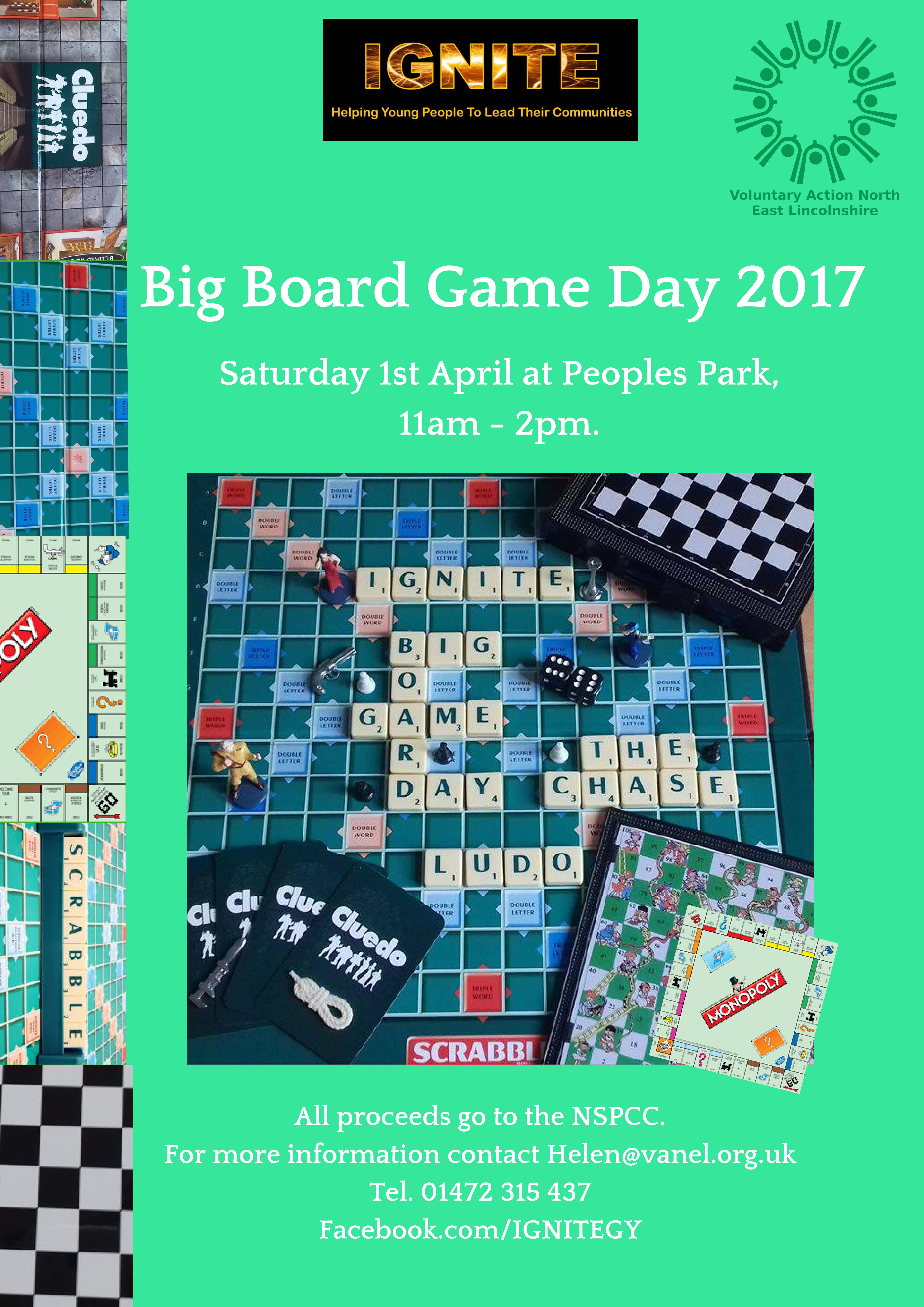 As part of the event, we will, of course, be needing board games to use. If anyone has any board games that they would like to donate or lend to us for the event, please email Helen@vanel.org.uk. Tel: (01472) 315 437. The same applies if you would like to help organise the event as a volunteer and on the day itself.