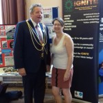 Pictured left to right: Inside Health Watch’s AGM. IGNITE Youth Development Worker Jenny Hodson with the Mayor of North East Lincolnshire Cllr Ron Shepherd. The IGNITE information stall.