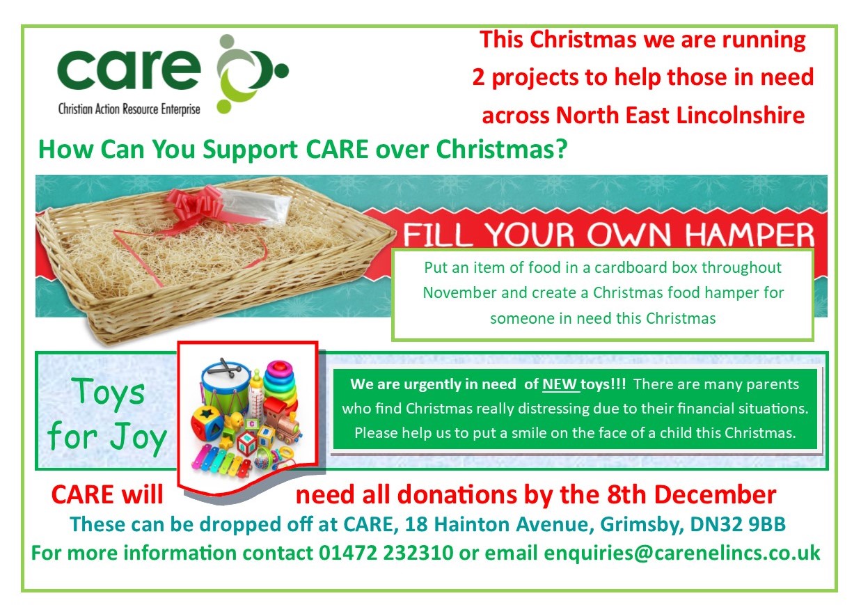 CARE is now arranging ‘Toys for Joy’ once again and we are asking for our local community to support this. What we ask is that people would donate any new toys to us so we can put a smile on the face of a child on Christmas Day morning.