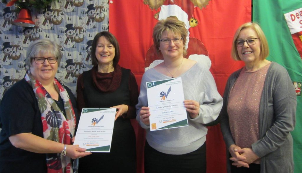 At the December Volunteer Managers Network (VWN) we were very pleased to be able to present no less than two certificates for SVA to Humber and Wolds Rural Action. Humber and Wolds Rural Action (until recently known as Humber and Wolds Rural Community Council) have been working through the VANEL Supporting Volunteers Award (SVA) and have just completed all neccessary the assessment work to become certified at both SVA level 1 and SVA level 2.