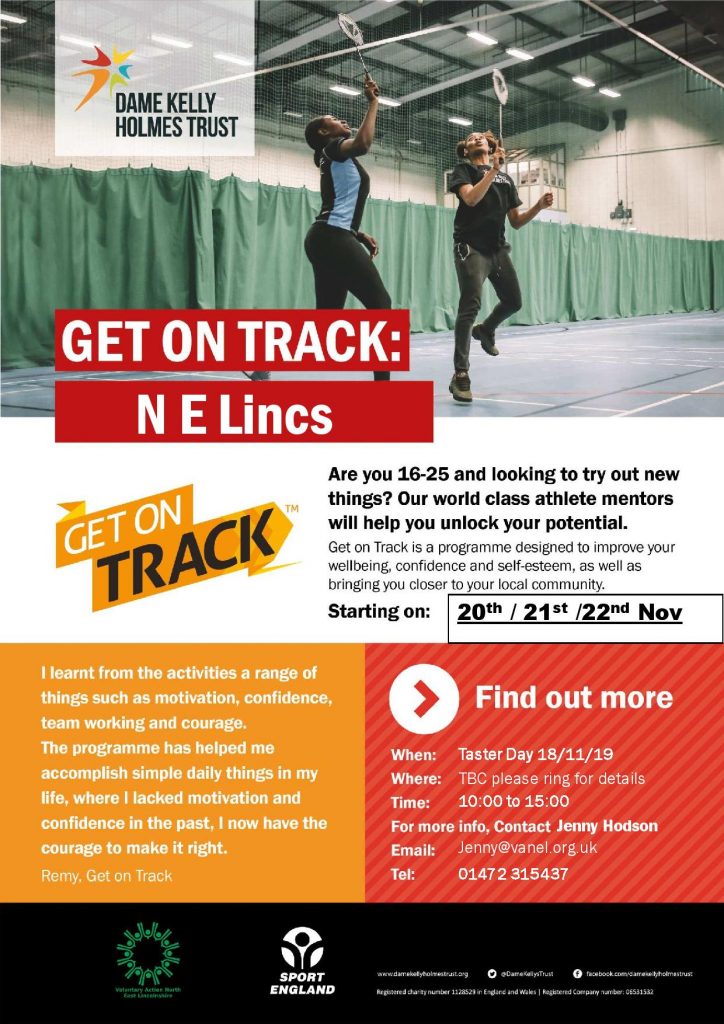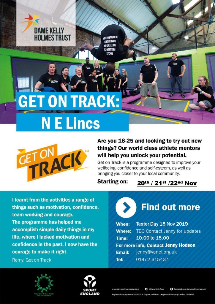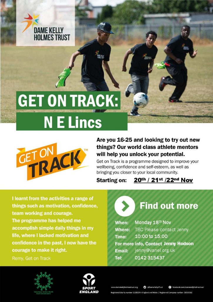Get on Track for Wellbeing is a community-based personal, social and emotional development programme designed to help young people become more physically active and to improve their mental wellbeing. VANEL are working with Dame Kelly Holmes Trust to deliver this programme to young people aged 16-25 in Grimsby.