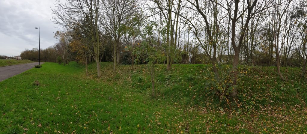 When the retail and food park near Meridian Parkway was built, a green barrier was built between the back of the shops and the local houses. Now that time has passed, this man made green space is covered with thick trees and provides a natural dividing line. It’s an example of using trees and planting within a constructed, unnatural environment.